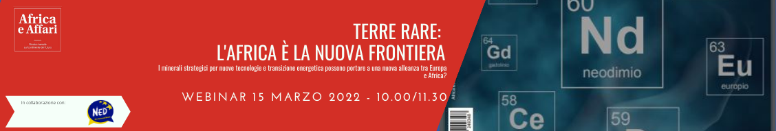 Un webinar dedicato a terre rare, Africa ed Europa si terrà martedì 15 Marzo 2022; l’iniziativa è organizzata da Africa e Affari in collaborazione con New European Dream (Ned).