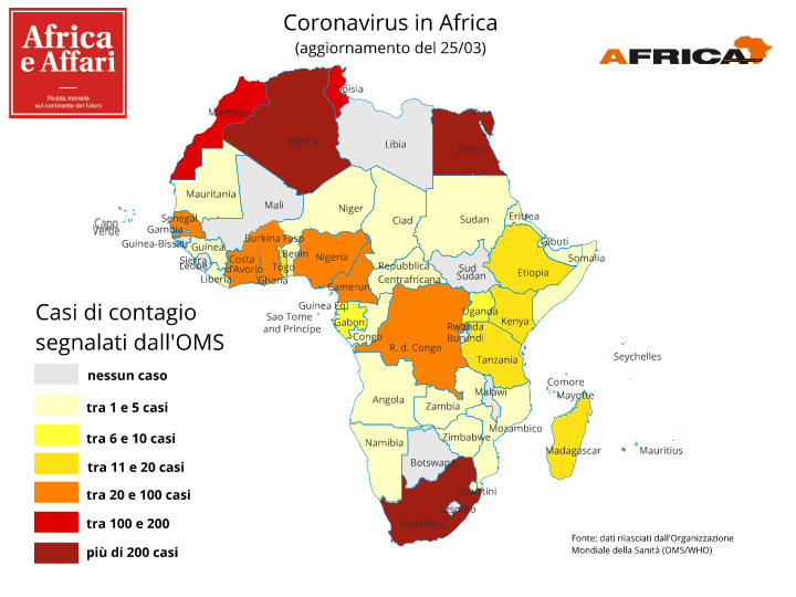 AFRICA – (aggiornamento del 25 Marzo) Il Sudafrica ha scavalcato l’Egitto ed è oggi il primo paese in Africa per numero di contagi dal Coronavirus-Covid19.